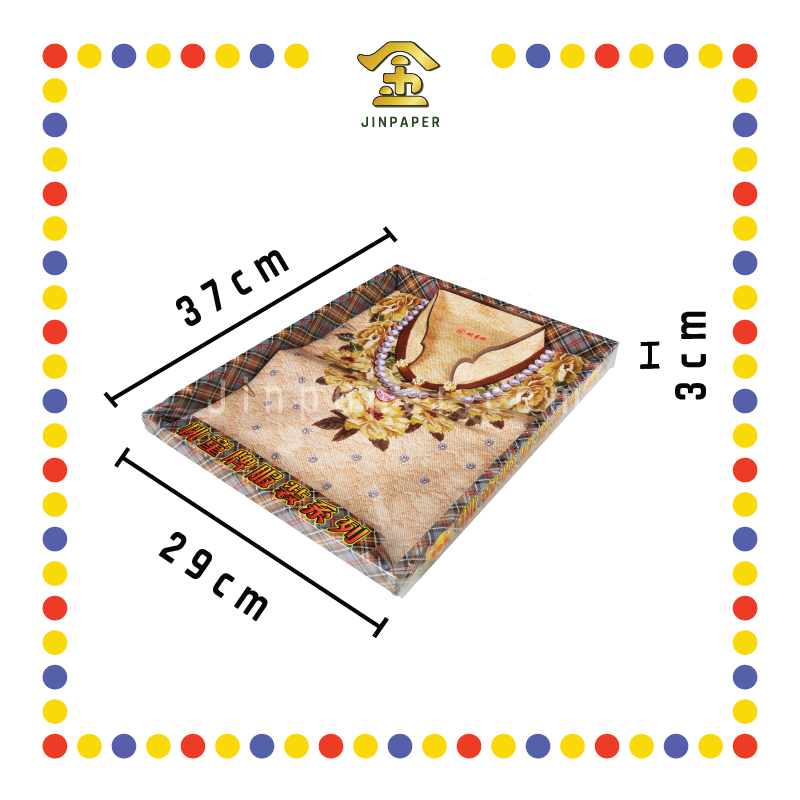 ✏️特点: 代表送布疋给阴人用, 件件精美 ✏️Features: On behalf of sending cloth to the Yin people, each piece is exquisite ✏️适用: 祭拜祖先, 好兄弟, 七月节 ✏️Applicable: Worship to ancestors, good brothers, July festival ✏️尺寸 Size: ➯ 30.5cm*40cm(衣服) / 23.3cm*35.5cm(裤子) ✏️数量 Quantity & 重量 Weight: ➯ 1件 &...