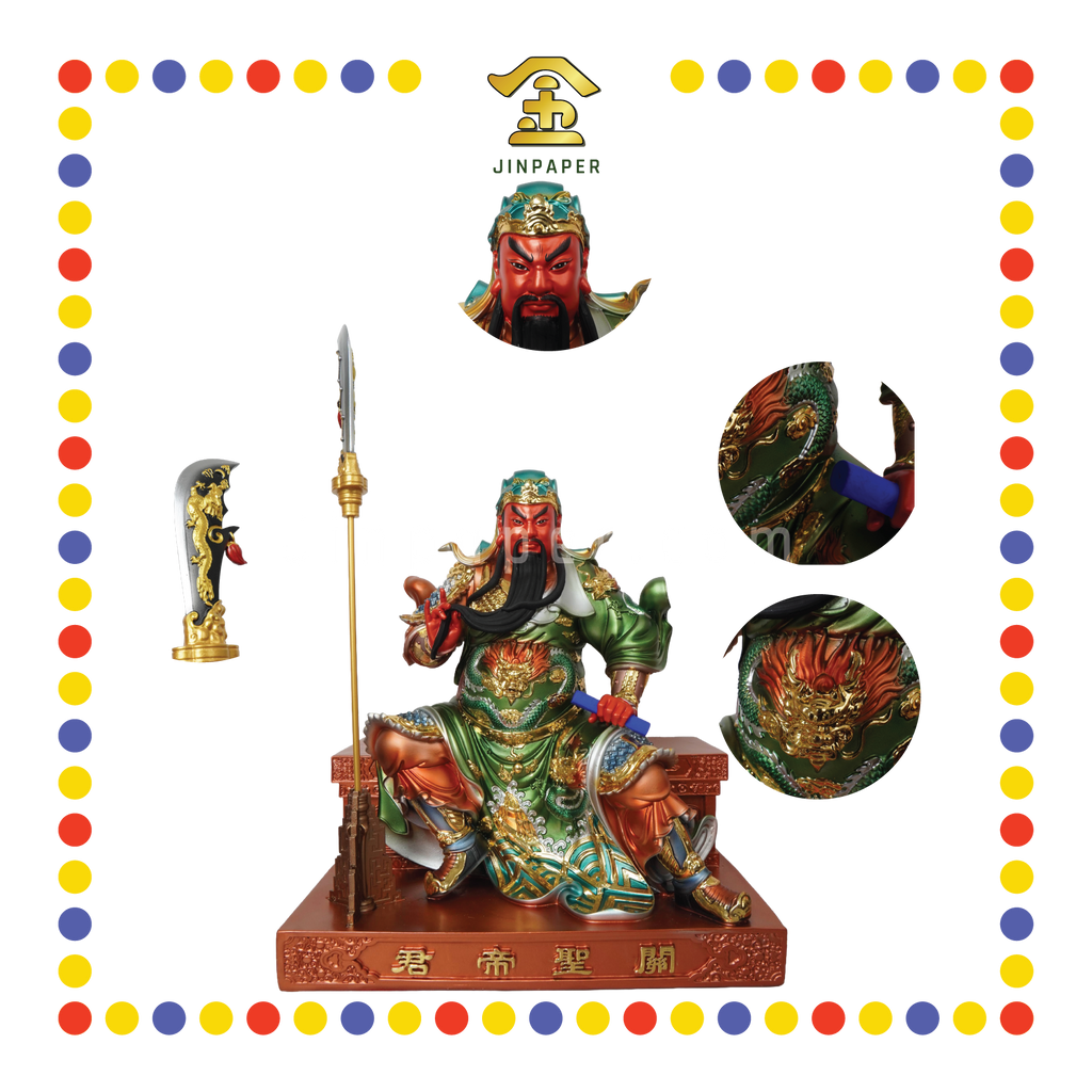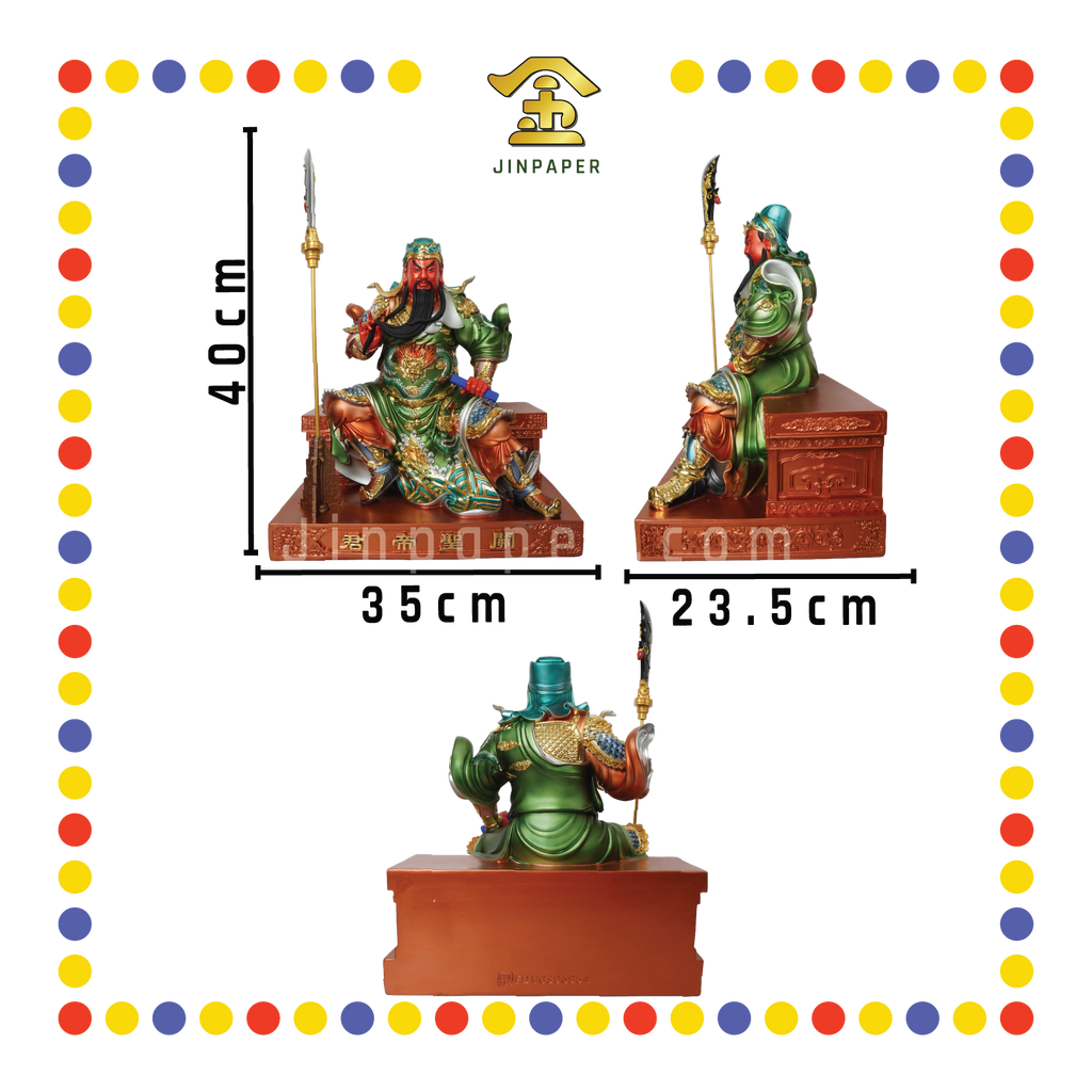 PRAYING STATUE 16" 树脂金缕彩新体坐关公(拿书)