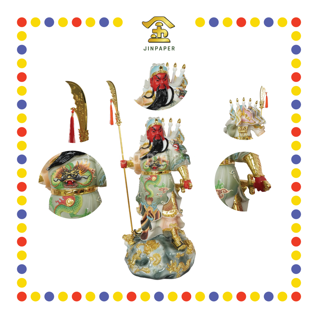 PRAYING STATUE 19寸 实心极彩绿九龙关公