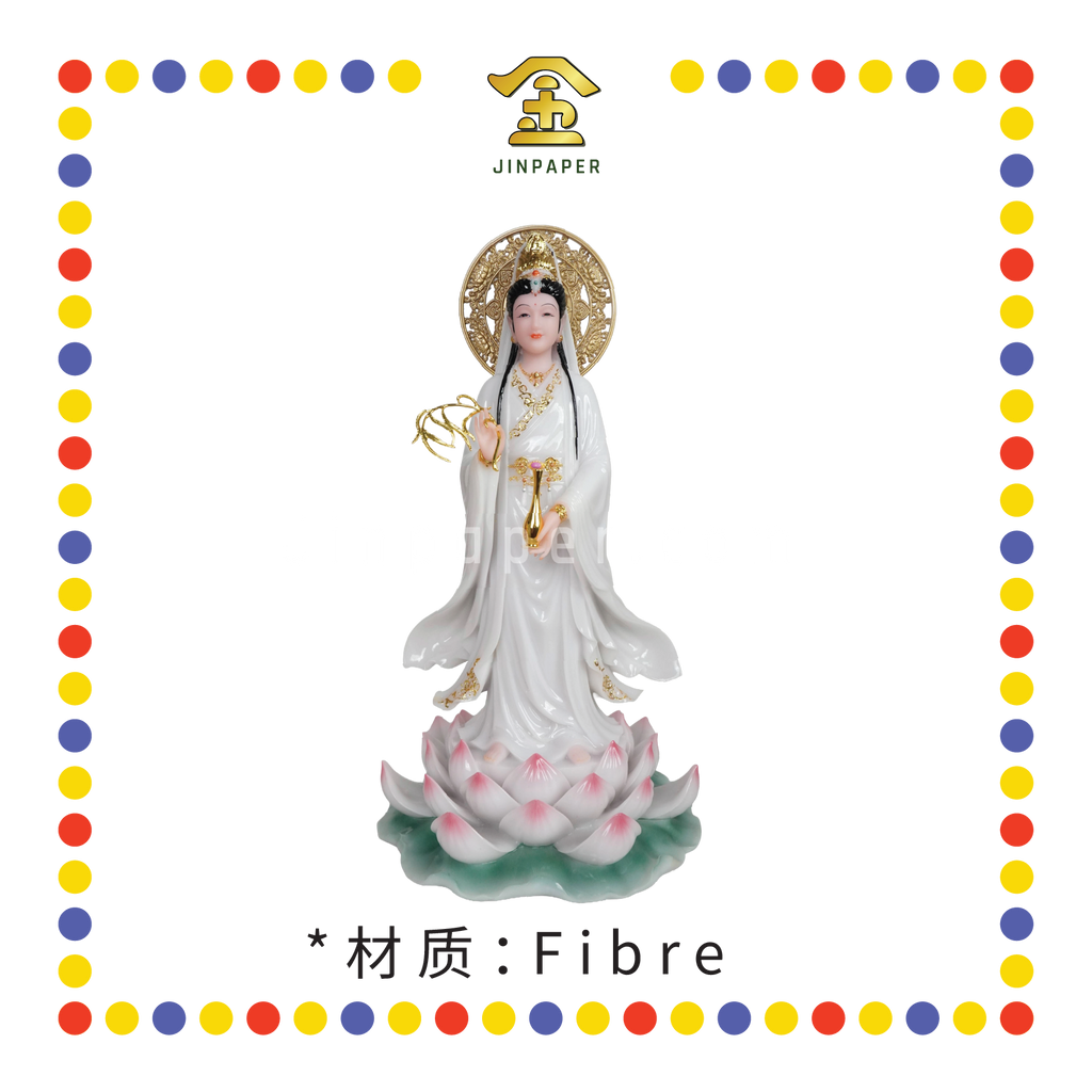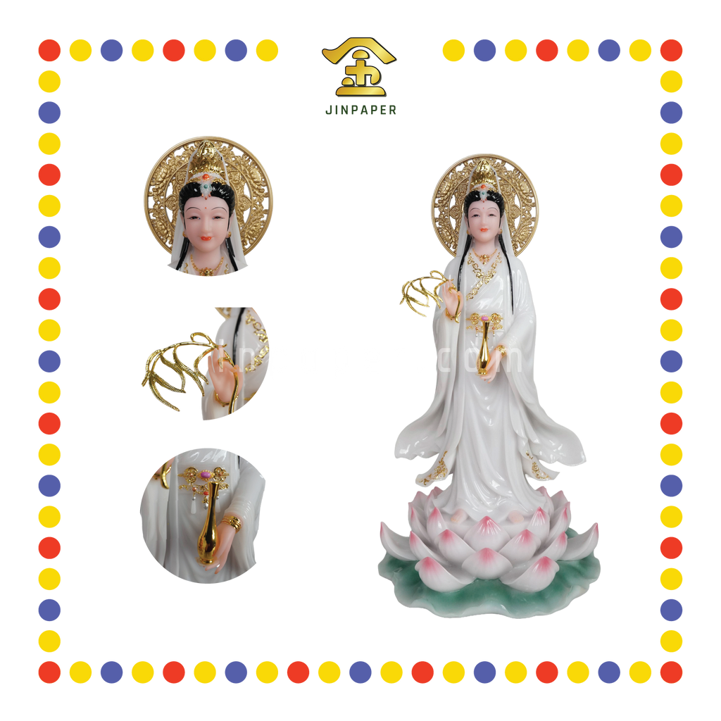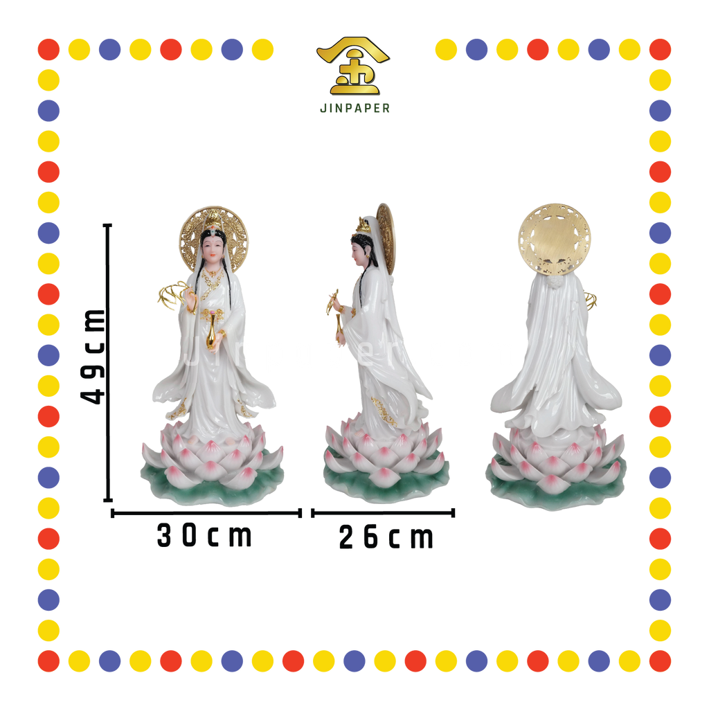 PRAYING STATUE 19" 实心站白描金妙善观音