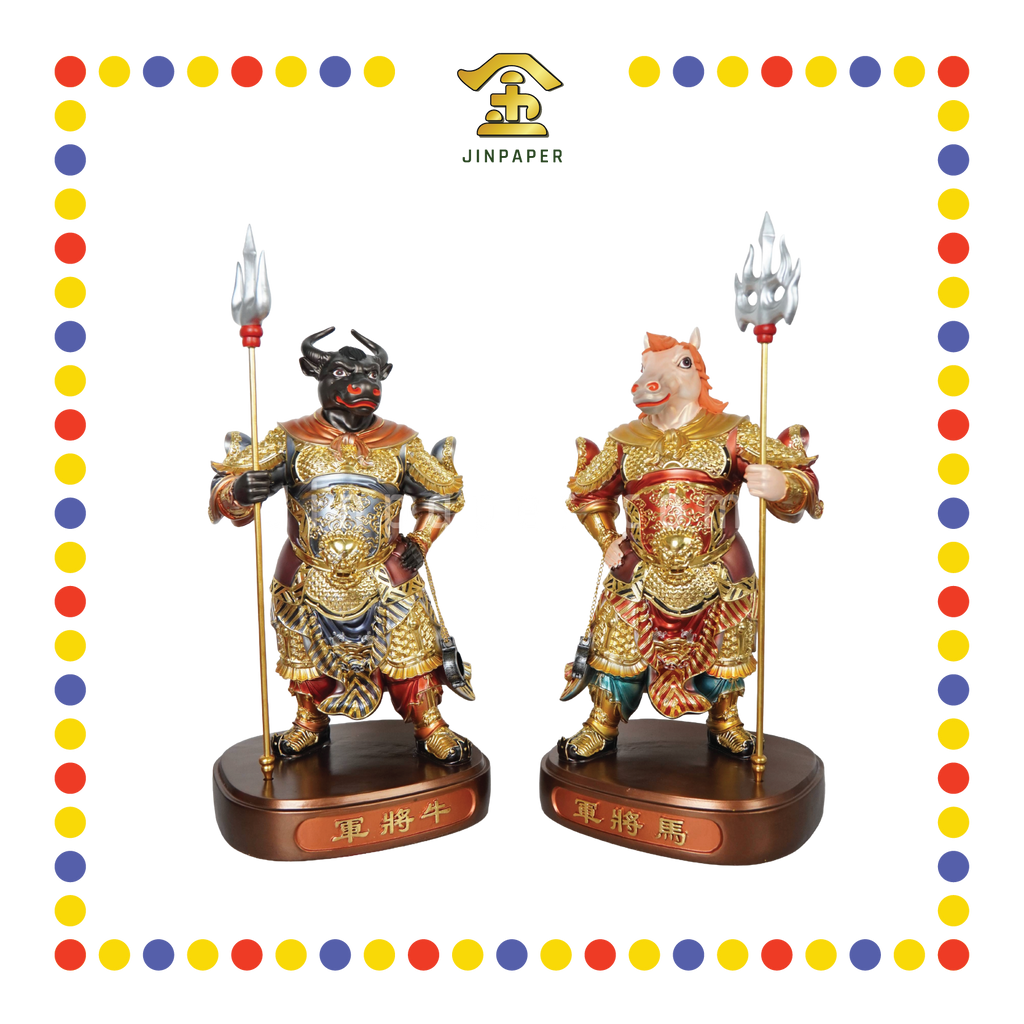 PRAYING STATUE 19" 树脂金缕彩牛头马面