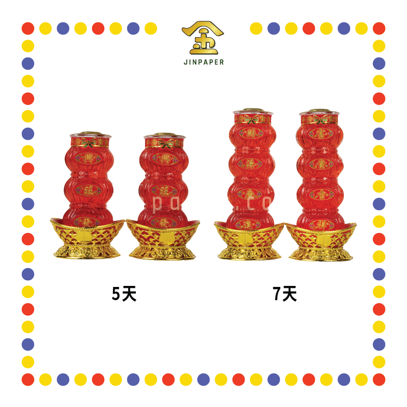 ✏️特点: 无烟环保, 防风隔热, 燃烧持久✏️Features: Smoke-free and environmentally friendly, wind and heat insulation, long-lasting combustion ✏️适用: 大神, 地主, 祖先等等✏️Applicable: Great god, landlord God, ancestor etc ✏️总长 Total Length & 蜡身 Candle Body: 5天 ➯ 6.3cm*18.8cm & 16cm 7天 ➯ 6.3cm*24cm & 21.4cm ✏️数量 Quantity & 重量...