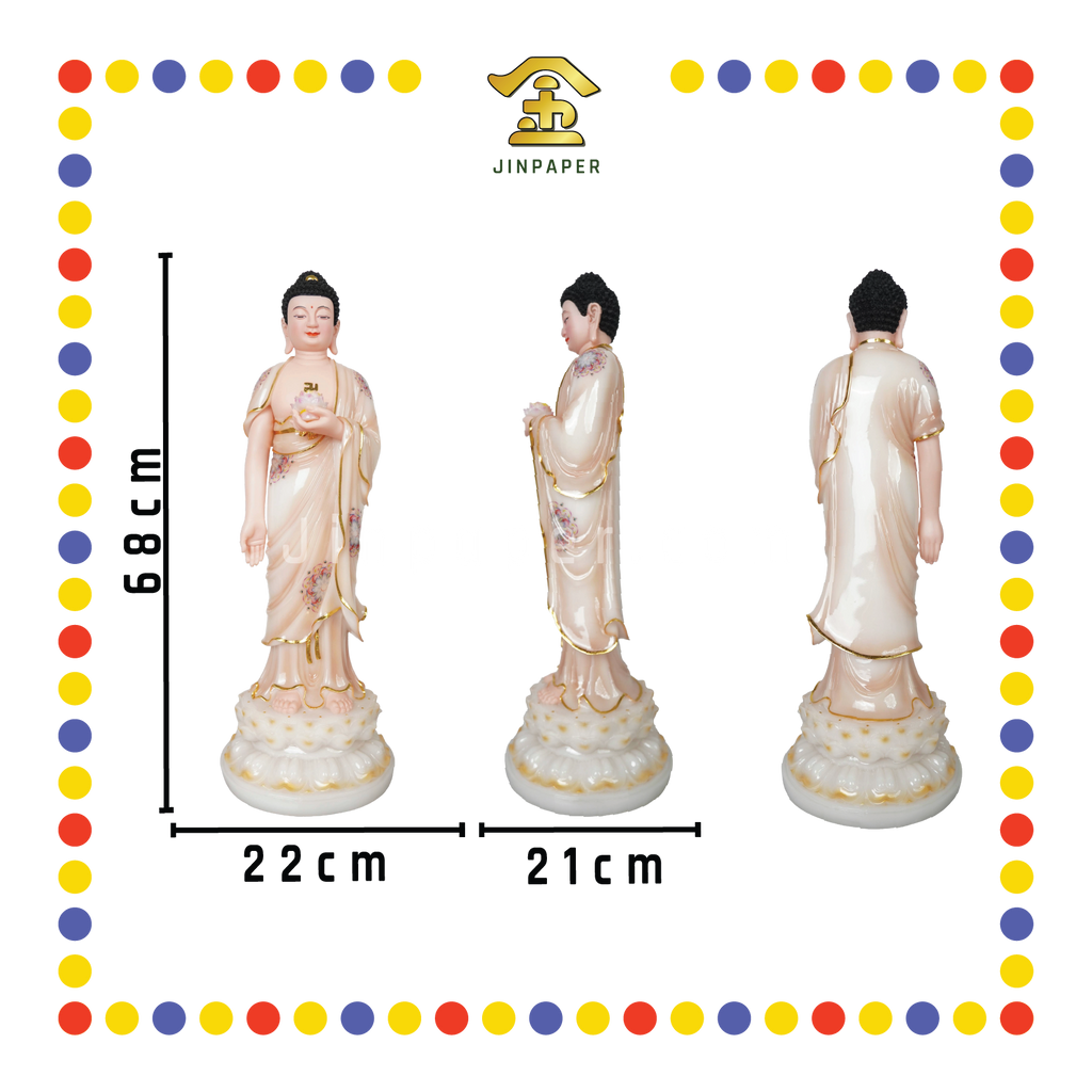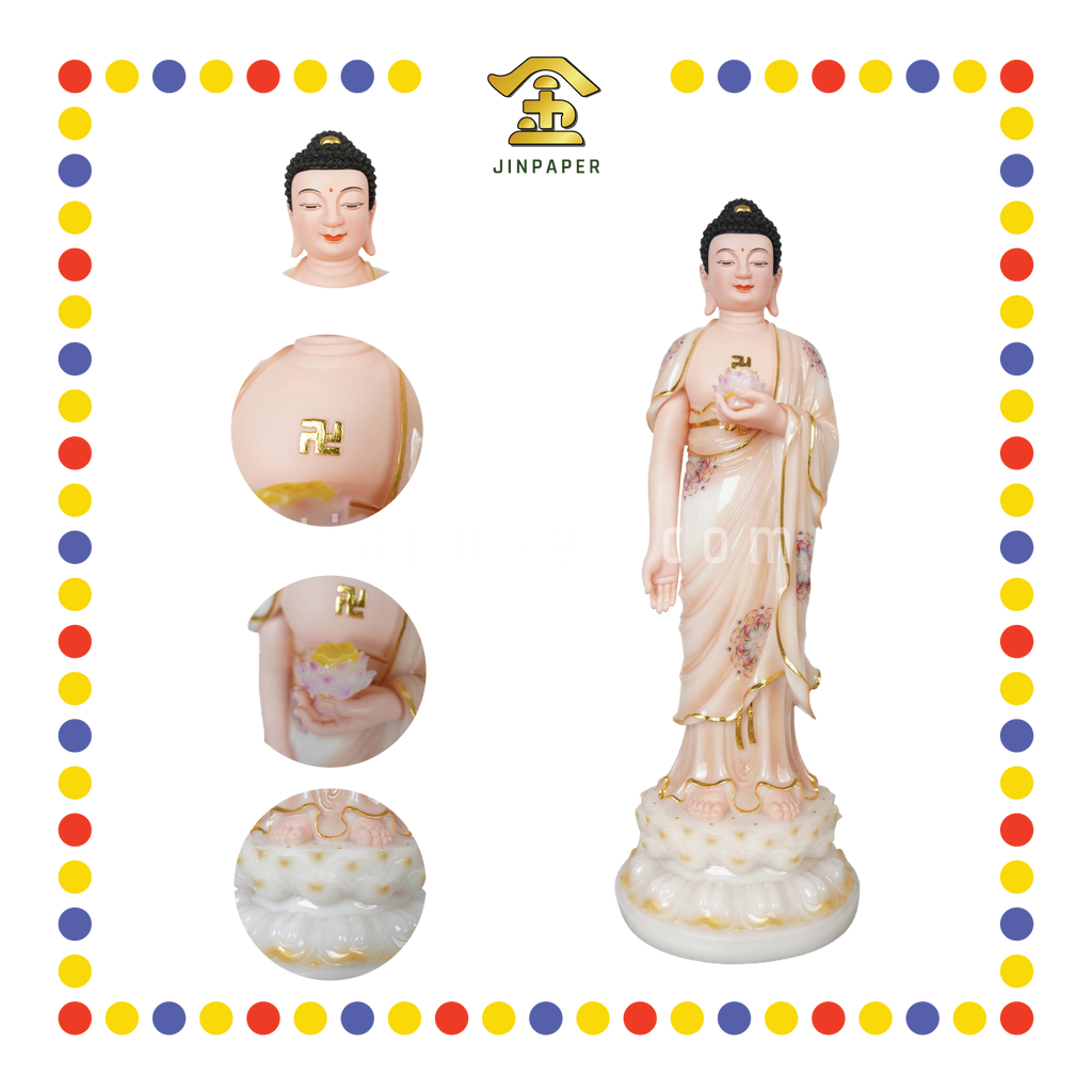 PRAYING STATUE 27寸 立白玉粉脸阿弥陀佛