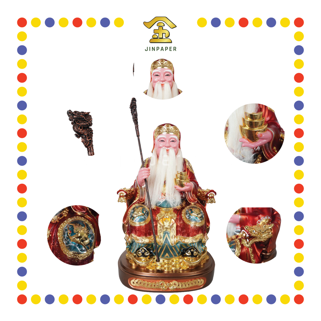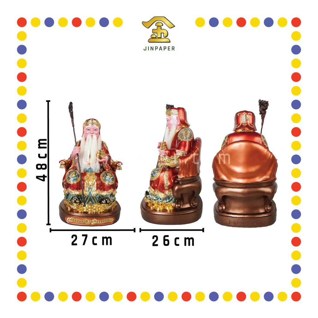PRAYING STATUE 19" 树脂金缕彩坐圆座土地-拐